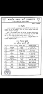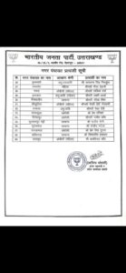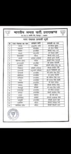 उत्तराखंड नगर निकाय चुनाव को लेकर बीजेपी ने प्रत्या शियों की पहली लिस्टा जारी कर दी है. बीजेपी ने नगर पालिका परिषद और नगर पंचायत में उम्मी दवारों के नाम पर मुहर लगा दी है. पहली लिस्टी में नगर पालिका परिषद और नगर पंचायत के उम्मी दवारों के नाम घोषित किए गए हैं. हालांकि, बीजेपी ने अभी नगर निगम में मेयर उम्मीादवारों के नामों का ऐलान नहीं की है. बीजेपी की पहली लिस्टा में नगर पालिका और नगर पंचायत अध्यगक्ष पद के लिए 39 उम्मीादवारों के नाम शामिल हैं.